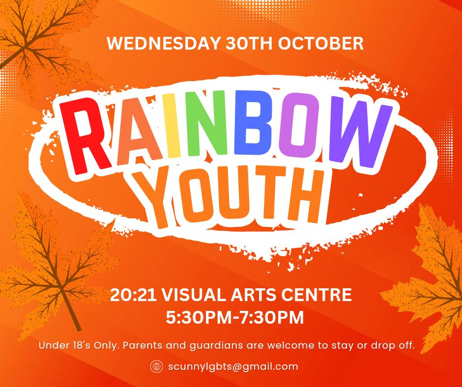 LGBTQ+ Rainbow Youth (Under 18’s) Every last Wednesday of the month at 20:21 Art centre in Scunthorpe. Activities and making friends, confidence building. 5:30pm-7:30pm