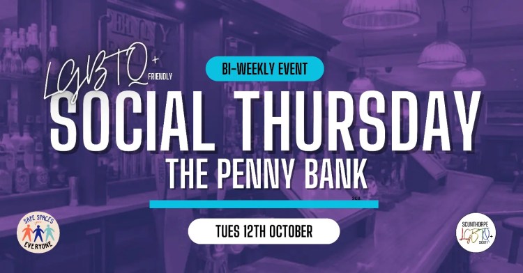 Fortnightly Sunday Social at Ashby Bowl, 170 Grange Lane North, Ashby, Scunthorpe. 1pm until 3pm. Run by the Scunthorpe Pride team.